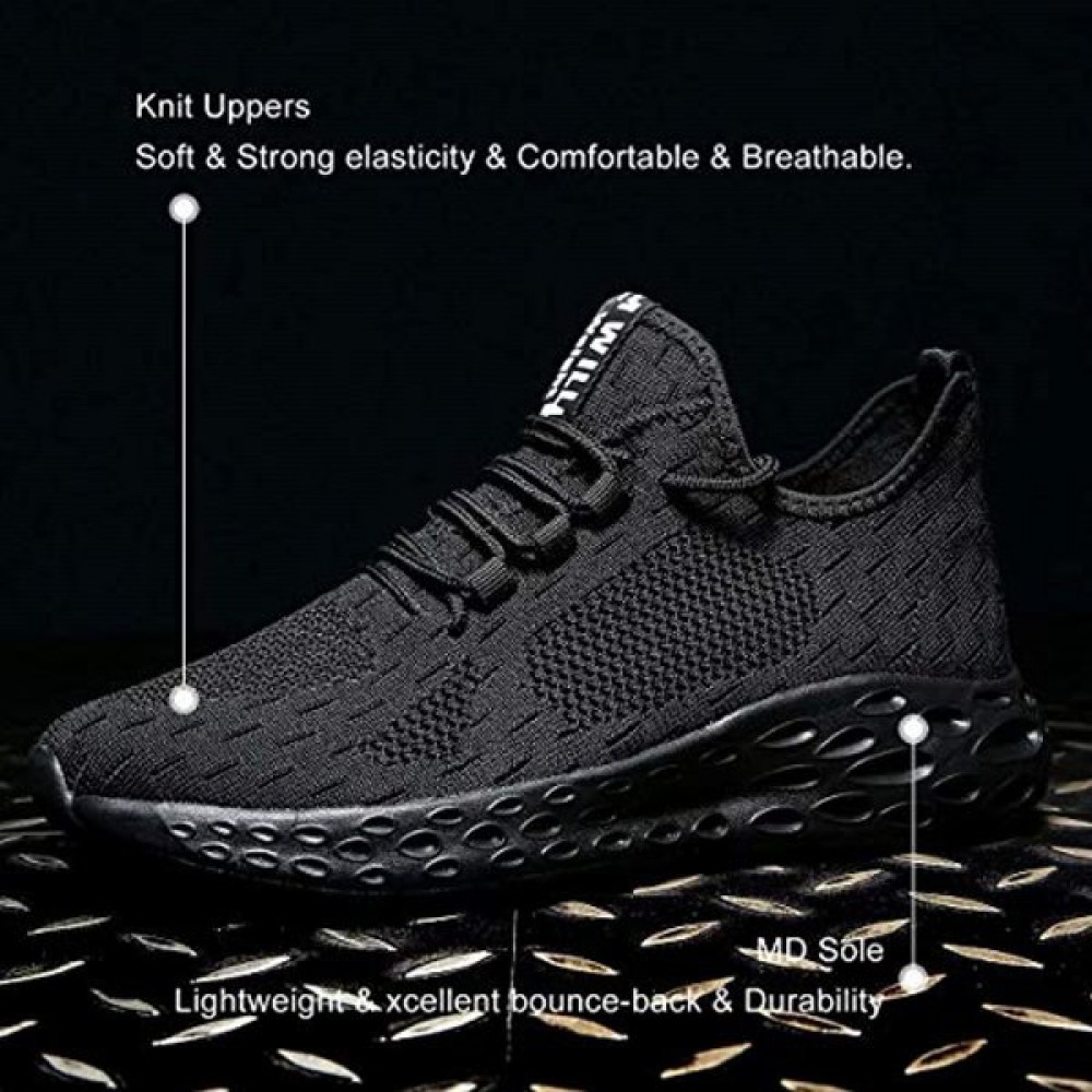 Mens Athletic Running Shoes Mesh Lightweight Sneakers Breathable Stylish Athletic Gym Shoes Casual Tennis Sport Shoes Black